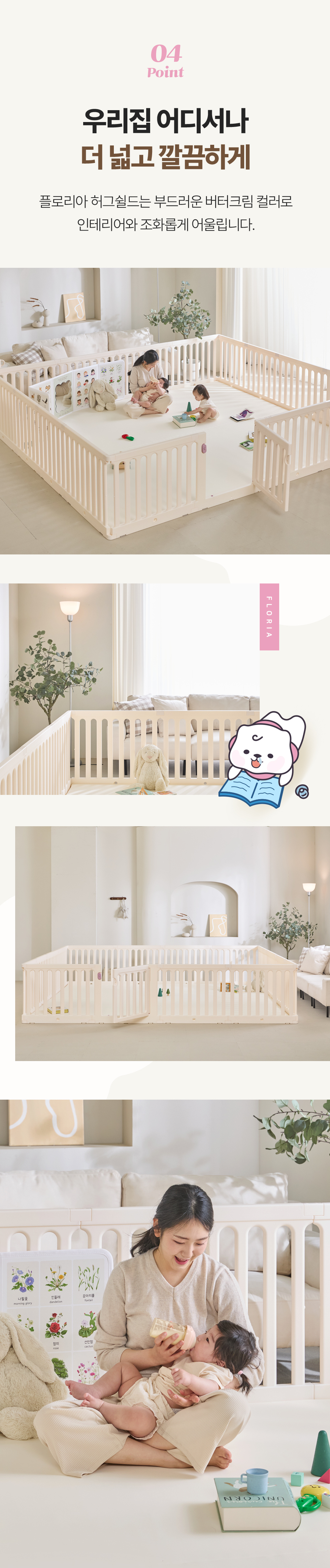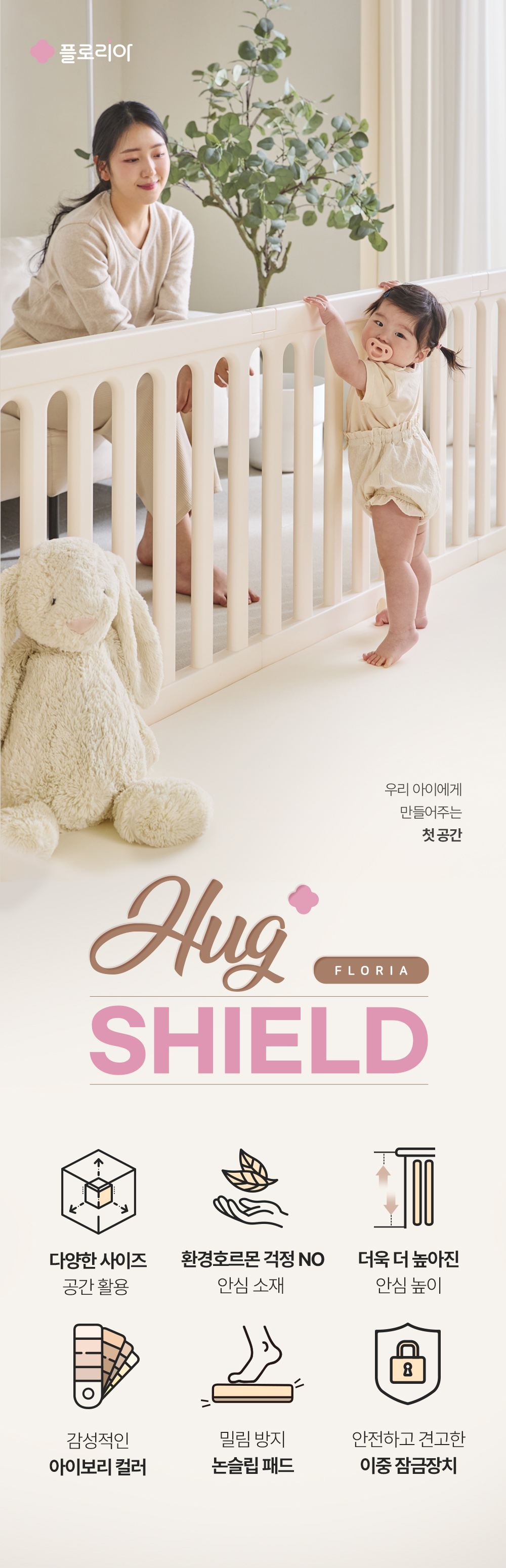 플로리아 허그쉴드는 기존 매트와 혼합 가능하며, 어느 공간이든 맞춤형 간단 설치가 가능합니다.