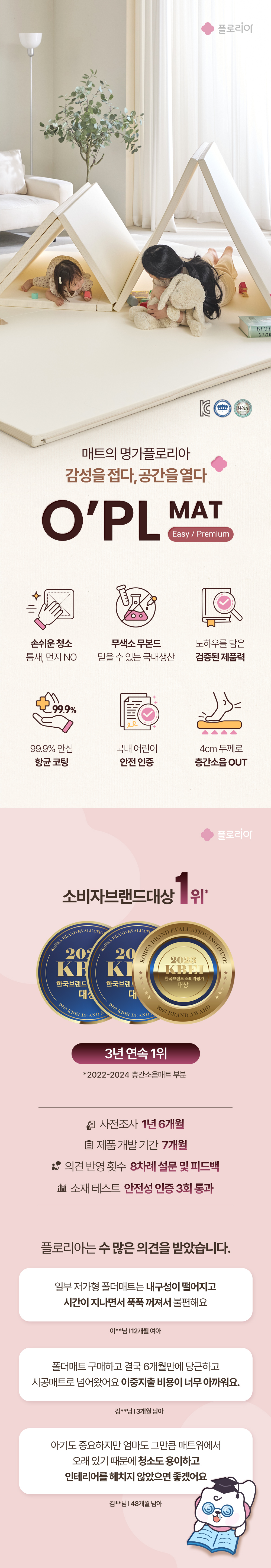 [오플매트] 플로리아 폴더 매트 층간소음 방지 접이식 아기 유아 거실 놀이방